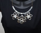 - Necklace Hammered Silver Metal Band 2-2.25" Flower Pendants ~18" + Extender