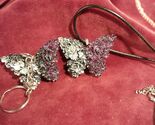 - Necklace and Keychain SET of 2 Black Purple Butterflies Mixed Media Gifting FREE