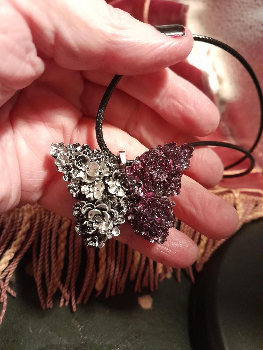 You get the Set of 2 Keychain and Necklace pink Butterflies.