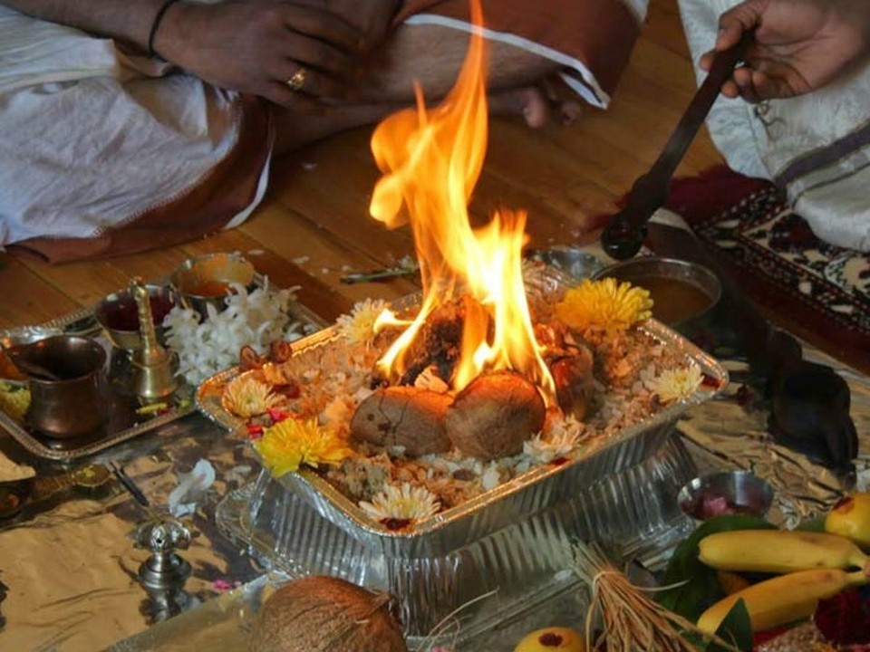 Über 10.000 Krafte werden mit 1008 Opfergaben in Feuer-Yajna rezitiert.