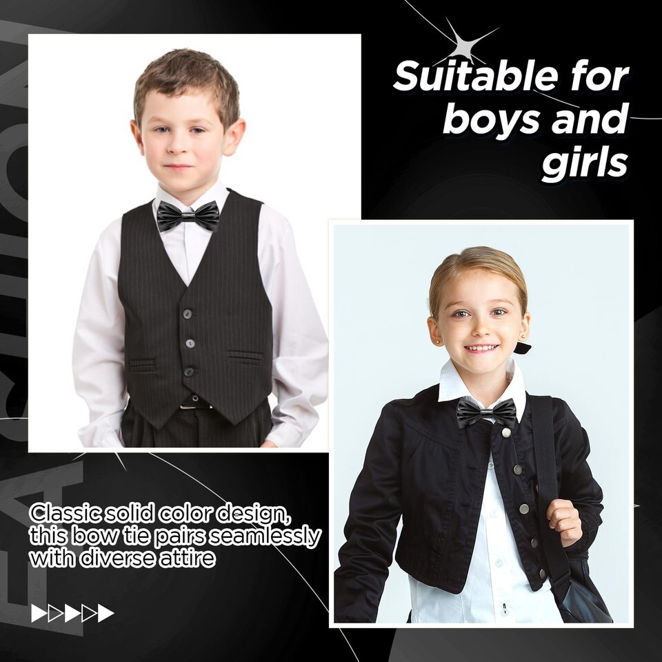 Versatile for All Occasions:Boasting a simple yet classic solid color design,this bow tie pairs seamlessly with diverse attire.Whether it's for weddings,concerts,christenings,choir performances,festive celebrations,daily school activities,or any formal affair,this children's glossy bow tie is an ideal accent to any formal outfit,adding a touch of sophistication while amplifying the adorable charm and confidence of your child.