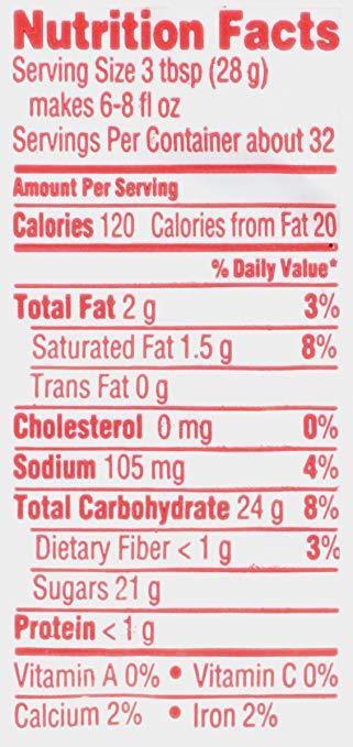 By the cup: Use 5 level Tbsp (about 33 g) of Nestle Hot Chocolate Mix and mix with 7 fl oz of hot water.