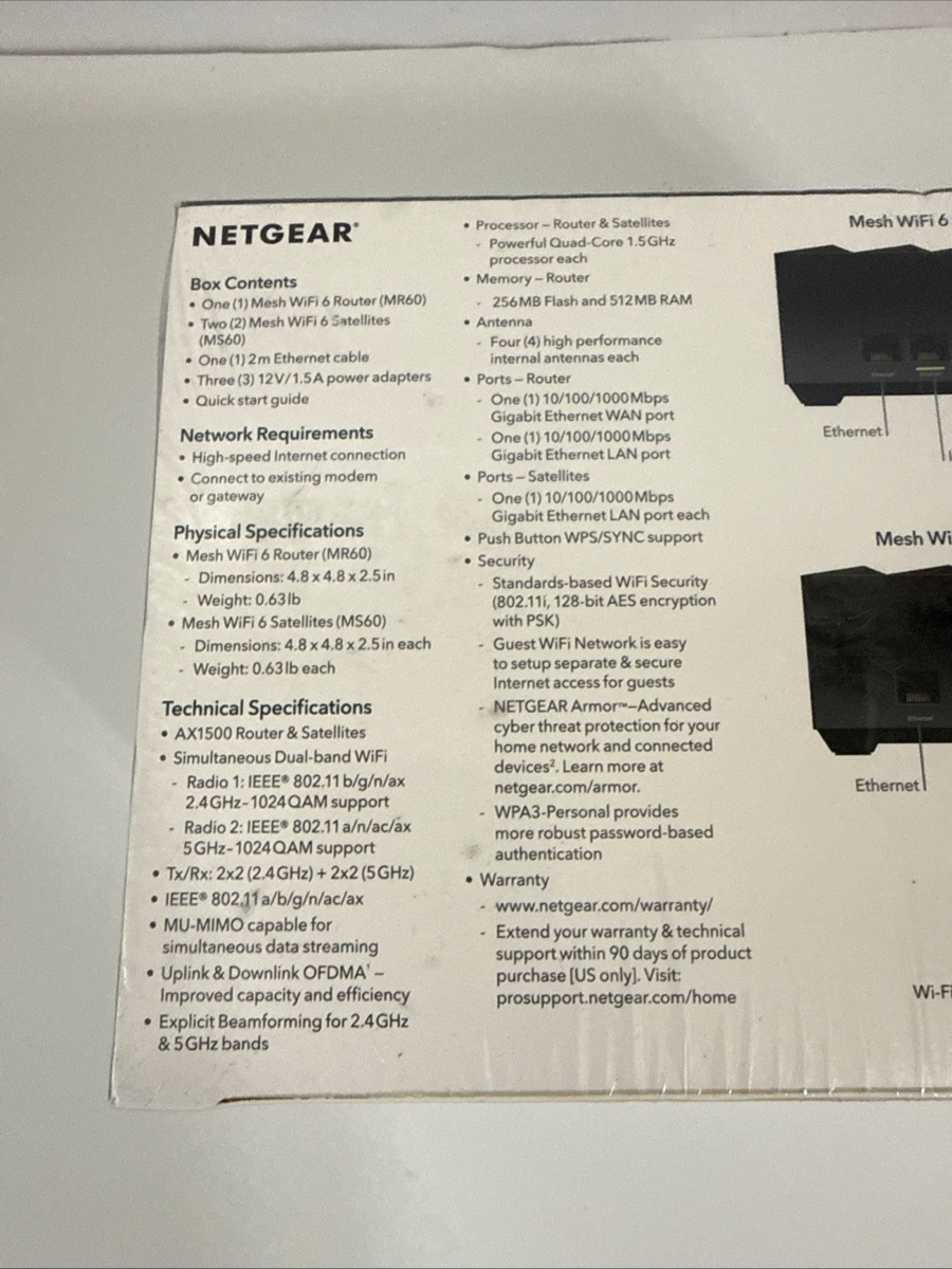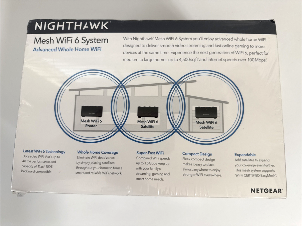 - Netgear Nighthawk Dual-band AX1500 3-Pack (MK6W) MR60 Mesh Wifi Router. NIB