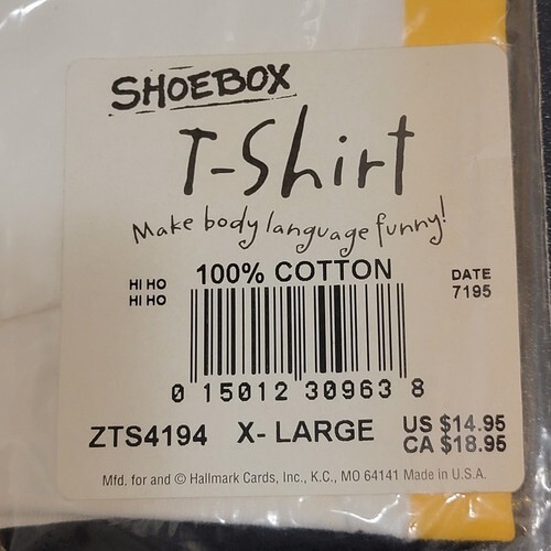 New in Package Vintage Hallmark / Shoebox Orange / Black / White T-Shirt "Hi Ho, Hi Ho It's Over the Hill I Go!" Tag Size XL.