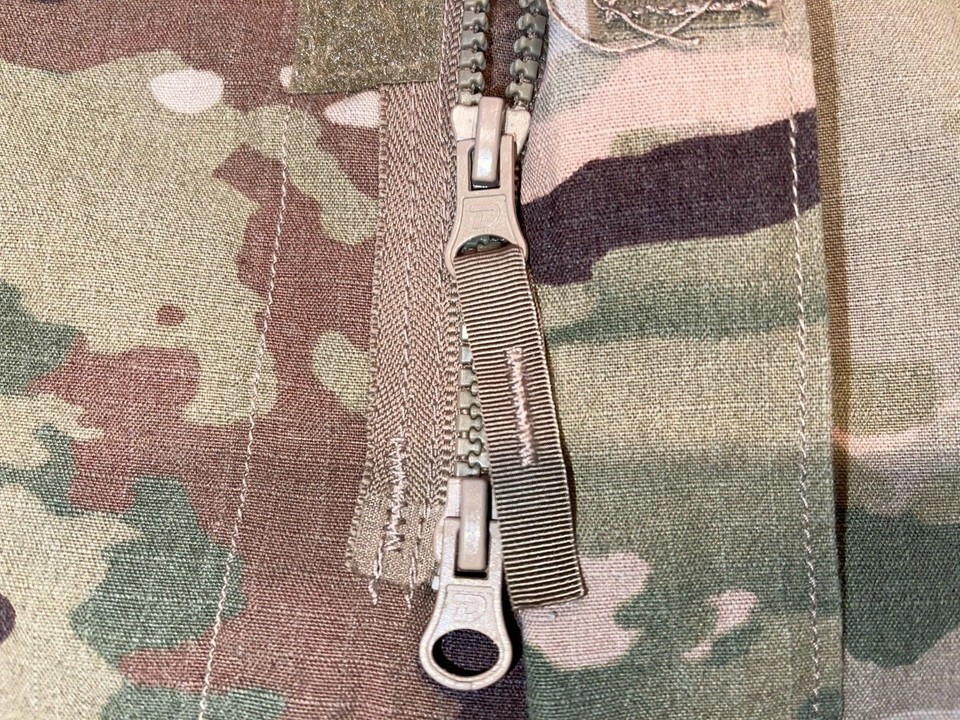 THE OCP UNIFORM HAS THE ZIPPERED ARM POCKETS.