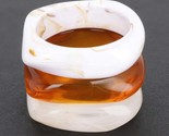 Design: A set of three resin bangles, combining amber and white tones for a stylish and contemporary look