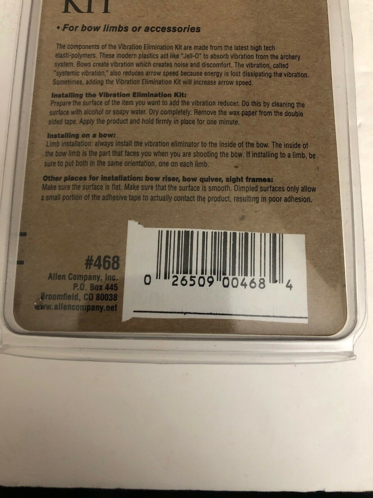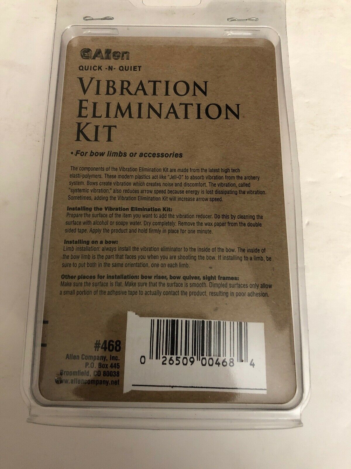 New Allen Archery Bow Vibration Elimination Kit,Quick Quiet Noise Dampener, Model #468. Condition is Brand New with tags.