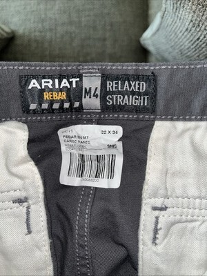 - New Ariat Rebar M4 Pants Mens 32x34 Relaxed Fit Straight Leg Dark Gray Workwear