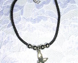 It is COOL THICK WEAVE BLACK PARACHUTE CORD WITH 4 SILVERTONE BEADS AND A CUTE FLYING BUTTERFLY PEWTER CHARM DANGLE
