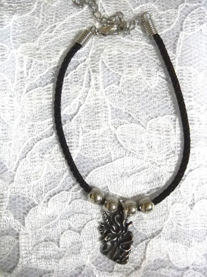 - NEW BLACK CORD w PEWTER MYSTICAL FANTASY LONG MANE UNICORN CHARM BRACELET 6 - 8"