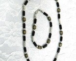 It is a BLACK WITH GOLD FLOWER BEADS ASSORTED SILVER TONE BEADS - NECKLACE BRACELET SET