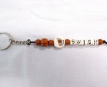 - NEW BROWN CERAMIC ROUND BASKETBALL & BEADS NET & HOOP with SWISH TEXT KEY RING