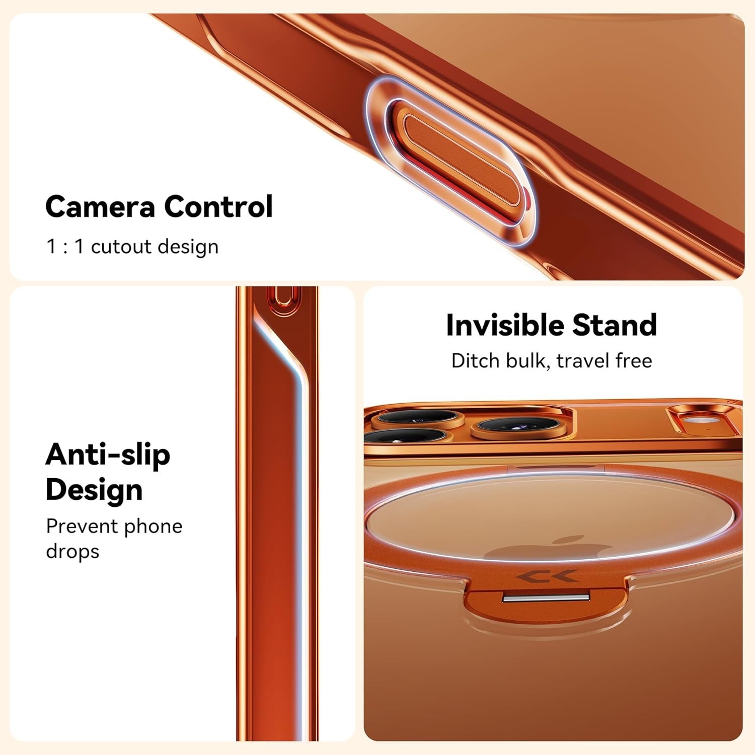 - NEW CASEKOO Titanium Magic Stand Pro Phone Case for iPhone 17 Pro series ORANGE