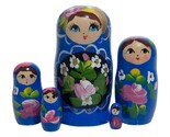 - New Classic Dark Blue Art Nesting Doll 5pc Tallest 4" 100% Natural Linden Wood