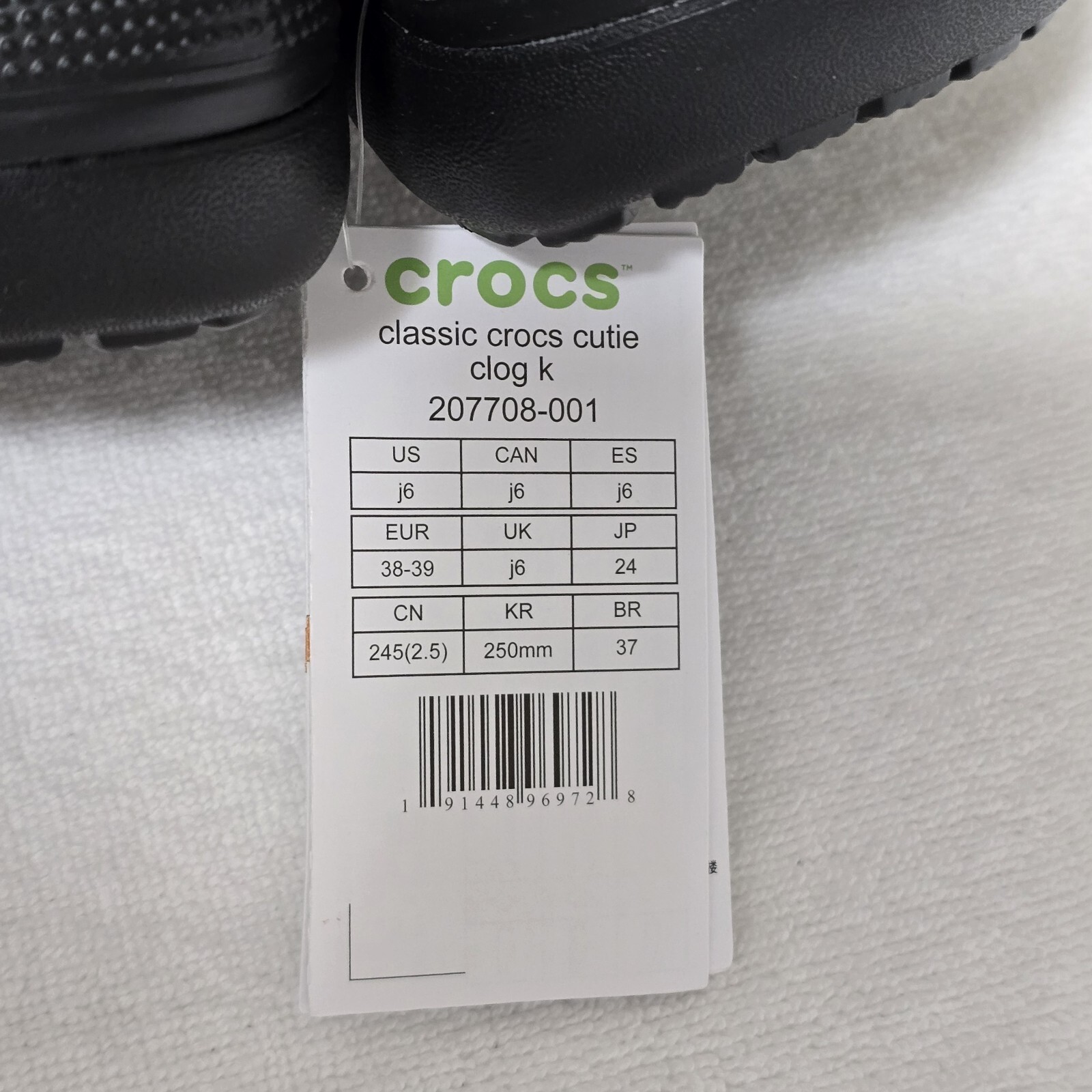 New With Tags Crocs Unisex-Child Kids' Cutie Crush Clog Big Kid Black Size J6 / Women's 8 / Men's 6.