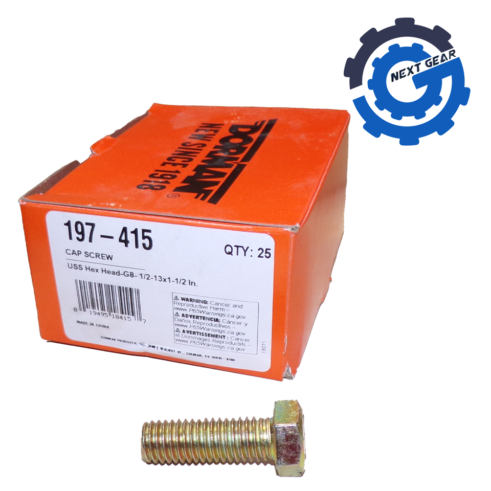 This is an Original New Dorman Box 25 Hex-Head Bolt Grade 8 Zinc Plated 1/2" 13 Thread 1.5" 197-415