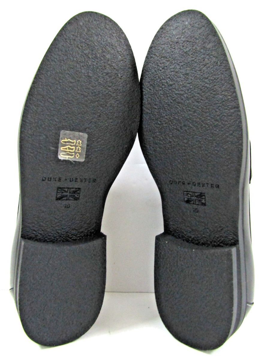 The New Duke + Dexter Wilde La Grande Paix Penny Loafers in size US 11 UK 10 EU 44 are a stylish and sophisticated choice for men looking for a versatile dress shoe. These slip-on loafers feature a classic round toe shape and a black leather design, perfect for a polished and professional look. The leather lining, upper, and outsole ensure durability and comfort, making them suitable for summer, fall, and spring seasons. With the renowned Duke + Dexter brand and timeless penny loafer style, these loafers are a must-have addition to any man's wardrobe.