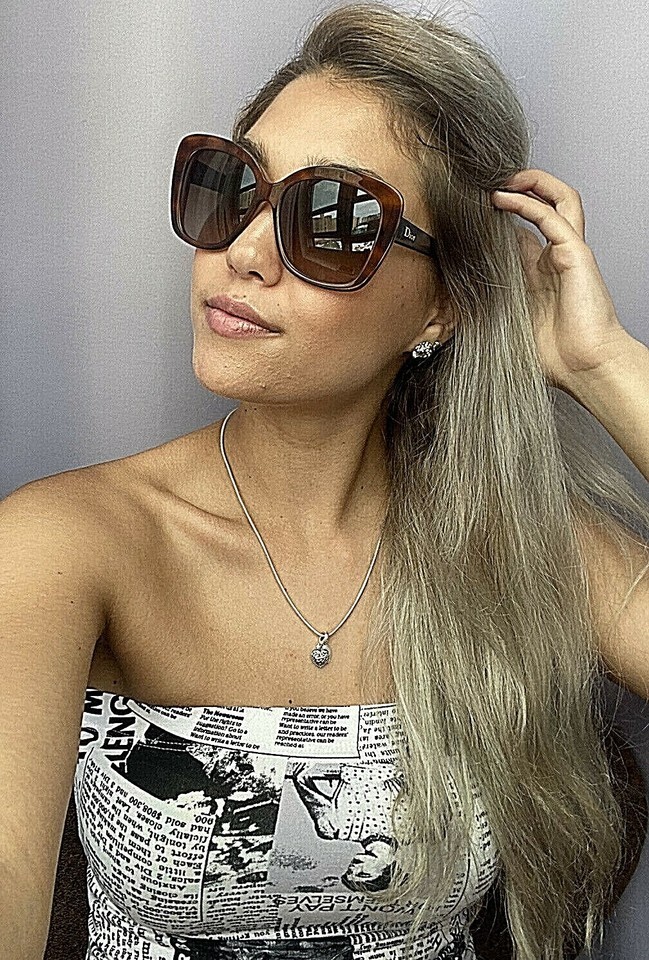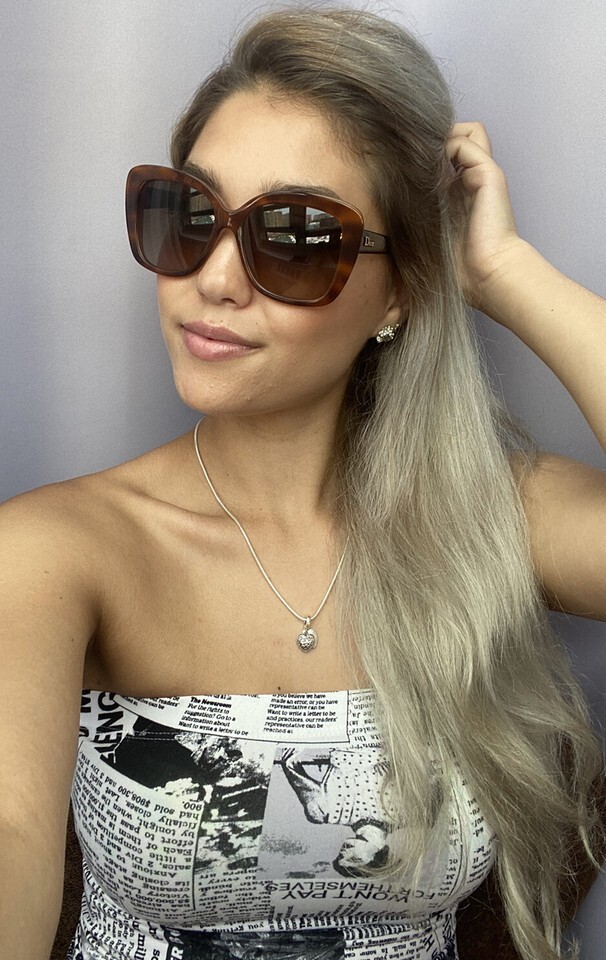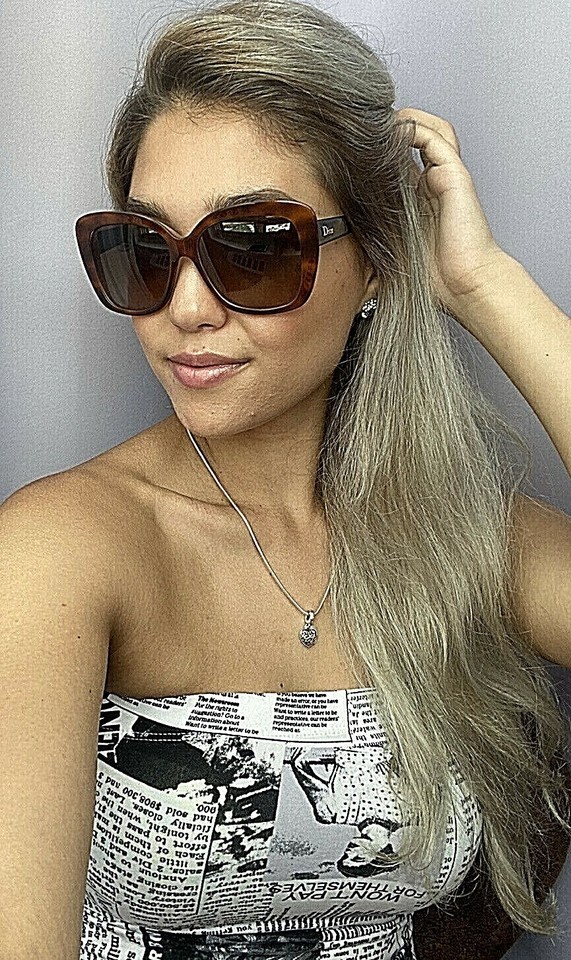 - New Elegant Christian DIOR Promesse2 Havana Oversized Women's Sunglasses Italy .