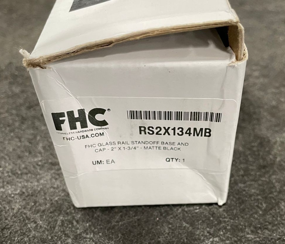 New FHC Glass Rail Standoff Base and Cap - 2" x 1-3/4" Matte Black RS2X134