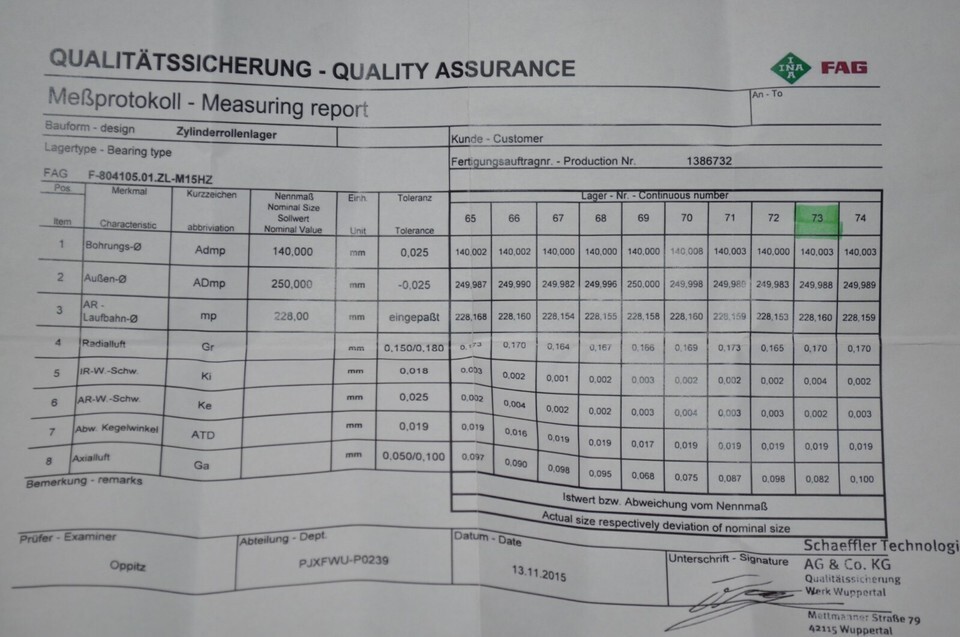 - NEW FAG Replacement Main Bearing Set for BRUDERER BSTA-500 250mm OD / 140mm ID