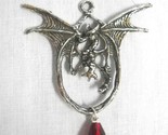 - NEW FANTASY DRAGON WITH BLOOD RED CRYSTAL DANGLE CAST PEWTER PENDANT NECKLACE