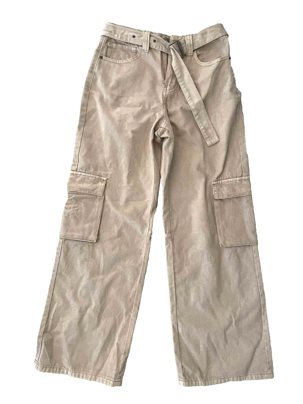 new FOREVER 21 Belted Straight/Re CARGO PANTS sz M Almond Jeans with pockets