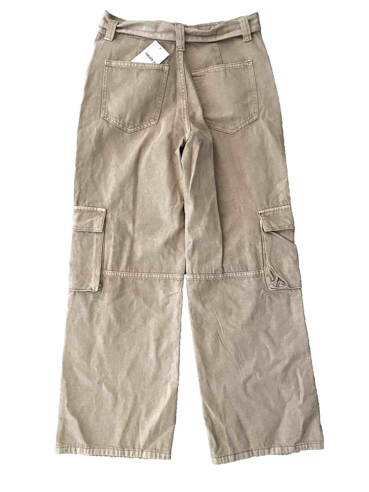 - new FOREVER 21 Belted Straight/Re CARGO PANTS sz M Almond Jeans with pockets