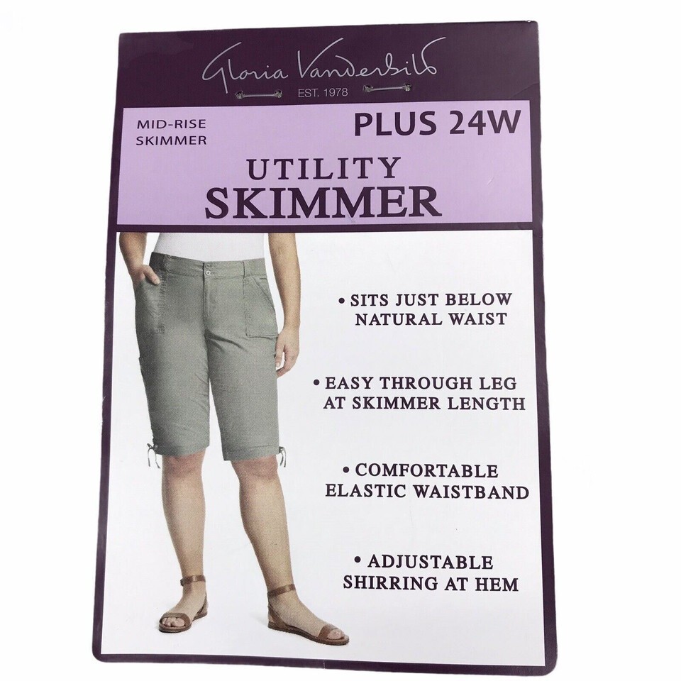 - New Gloria Vanderbilt Women's Utility Skimmer Capri Pants Green Stretch Plus 24W