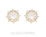 New Gold Dipped Cz Pearl Halo Drop Earrings