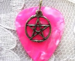 It is a NEW - HOT PINK CELLULOID GUITAR PICK WITH A USA HAND CAST PEWTER WICCA PENTACLE STAR CHARM PENDANT NECKLACE
