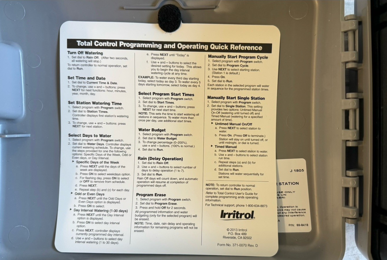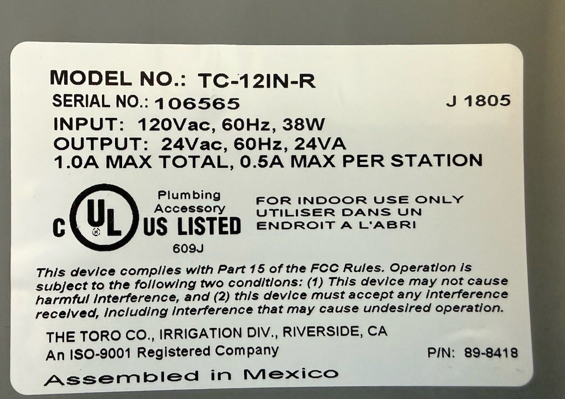 The NEW Irritrol Total Control TC-12IN-R 12 Station EXT/INT is a versatile sprinkler controller designed for indoor use. With 12 zones, this model from the Total Control product line by Irritrol allows for precise watering control in your yard, garden, or outdoor living spaces. Made in China, this sprinkler controller by Hardie Total Control offers convenience and efficiency in managing your watering needs.