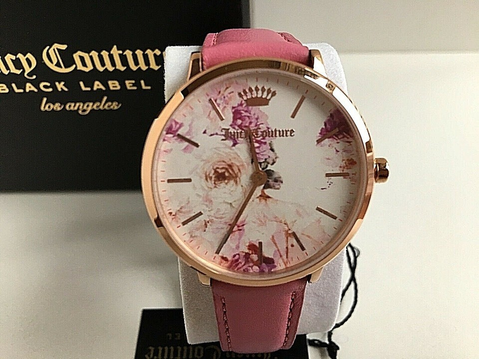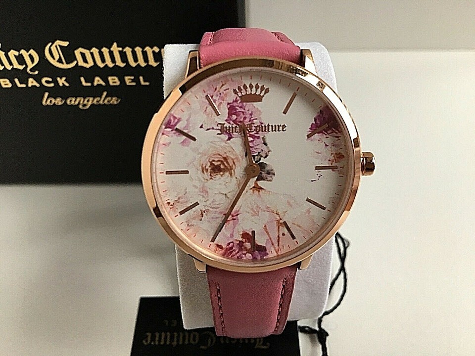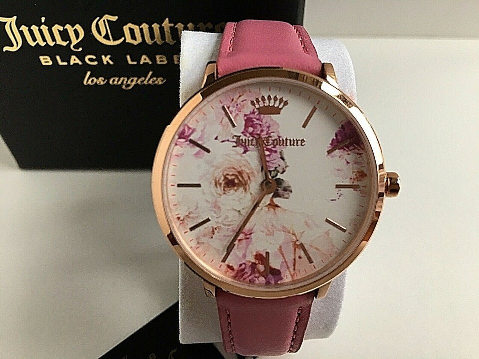 - New Juicy Couture Ultra Slim Leather Strap Rose Gold Pink Women's Watch .