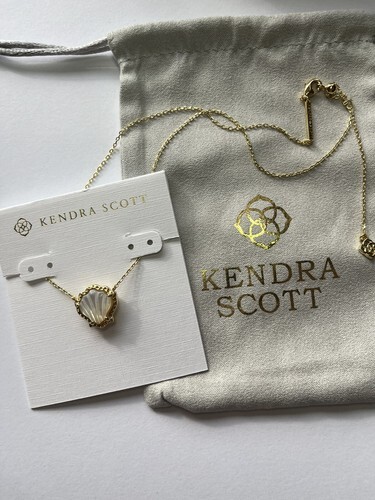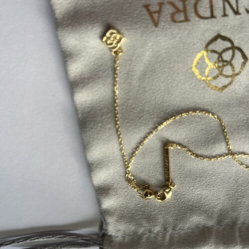 Gold plated over brass. Kendra Scott pouch included. Size: 19? L .Each one has its own unique color and pattern may very slightly.