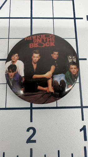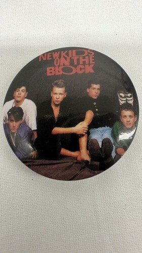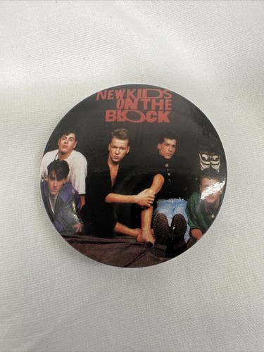 This vintage 6" button/pin from 1989 features the iconic group relaxing and is a must-have for any New Kids on the Block fan. The item is in great shape and has been well-preserved over the years, making it an excellent addition to any collection.