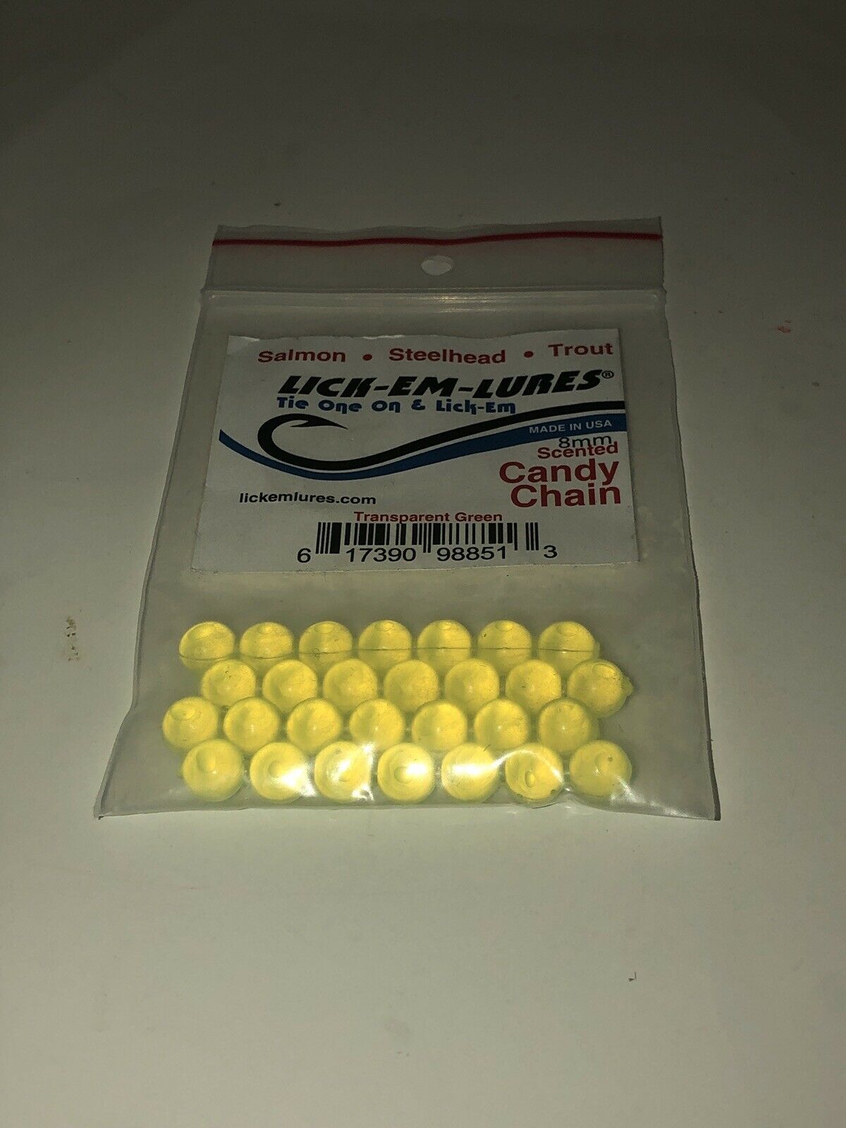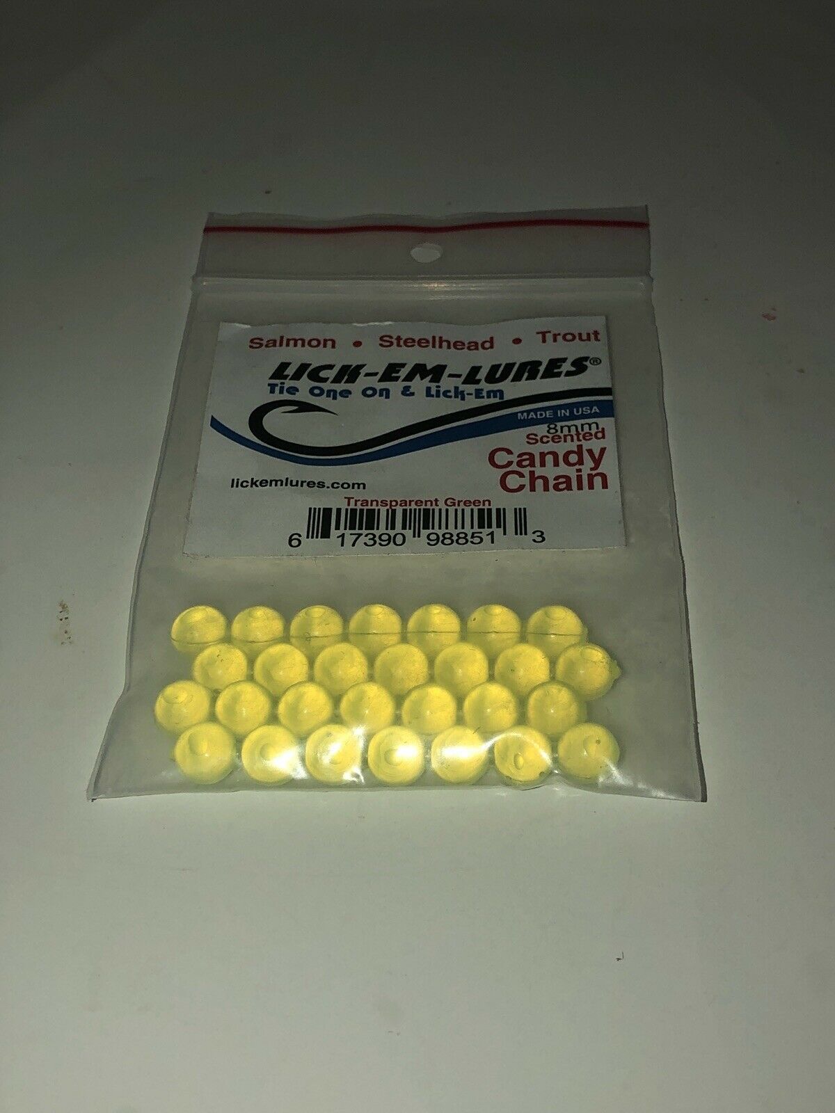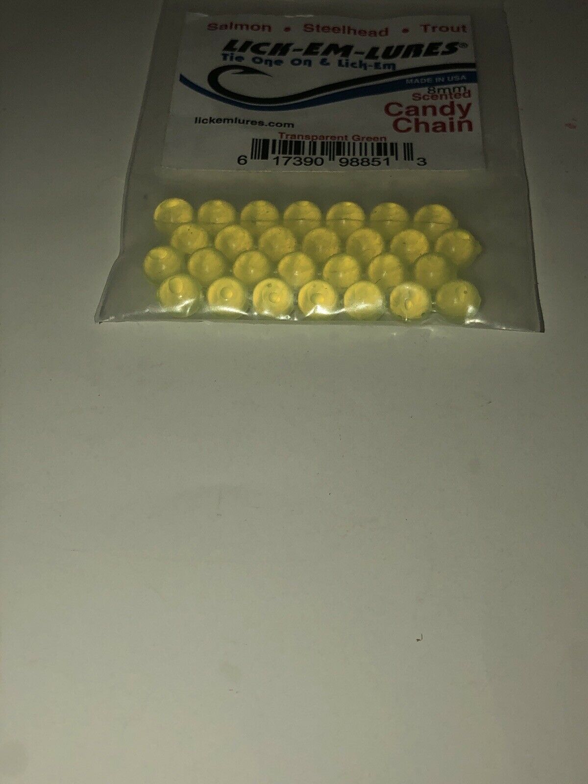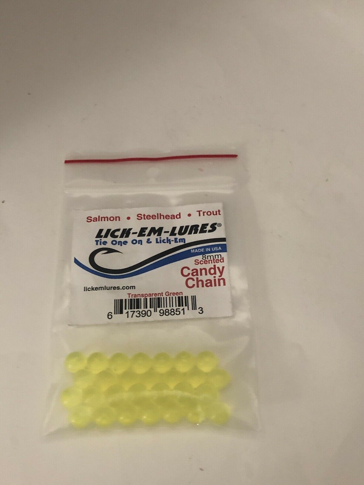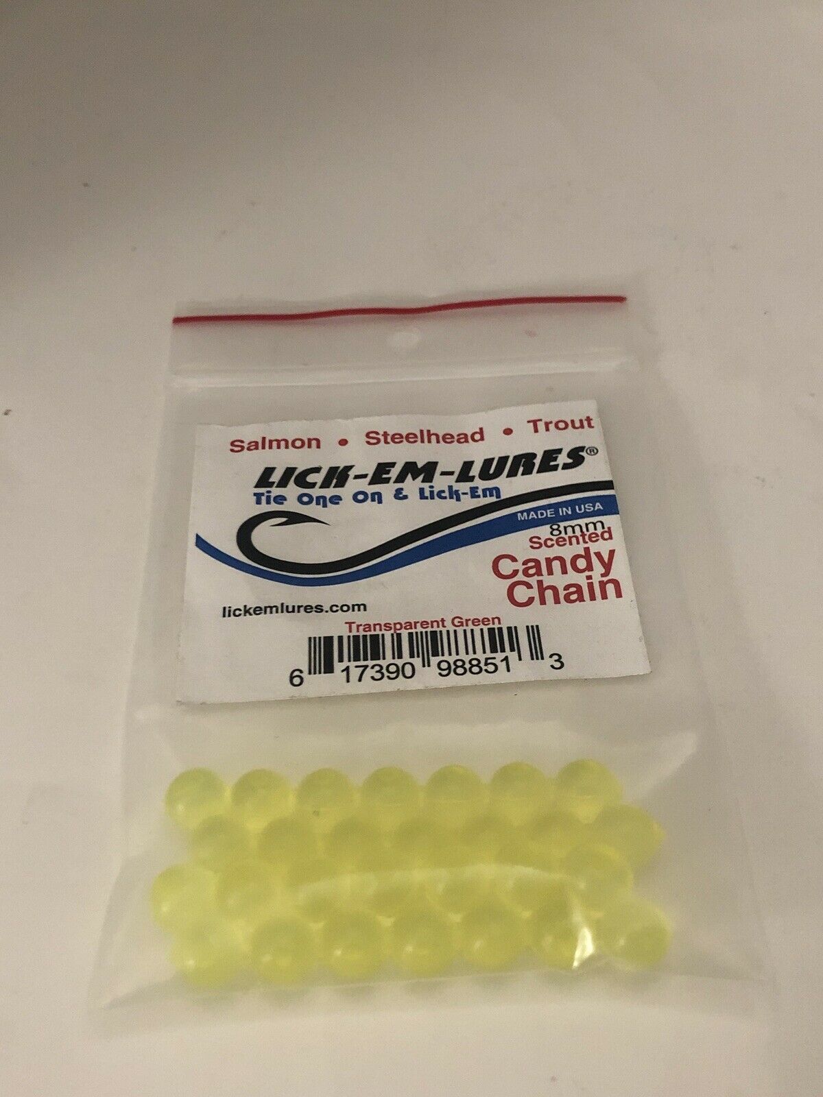NEW LICK-EM-LURES Candy Chain 8mm| Transparent Green|Soft Beads SHIPN24HR