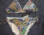 - New La Blanca Palm Blue Halter Top & Side Tie Hipster Bottoms Size 14