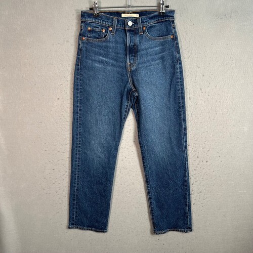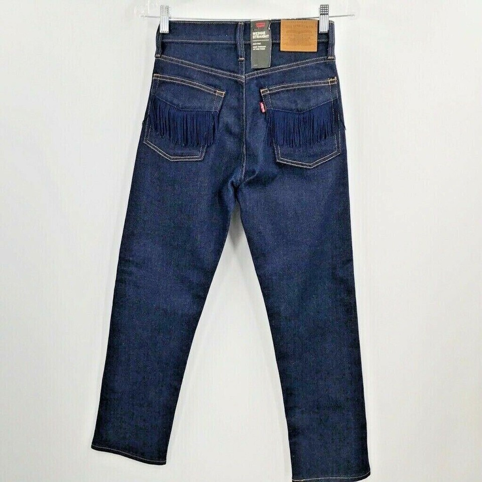 - New Levis Womens Fringe Pockets Wedgie Straight Leg Blue Dark Wash Jeans 26
