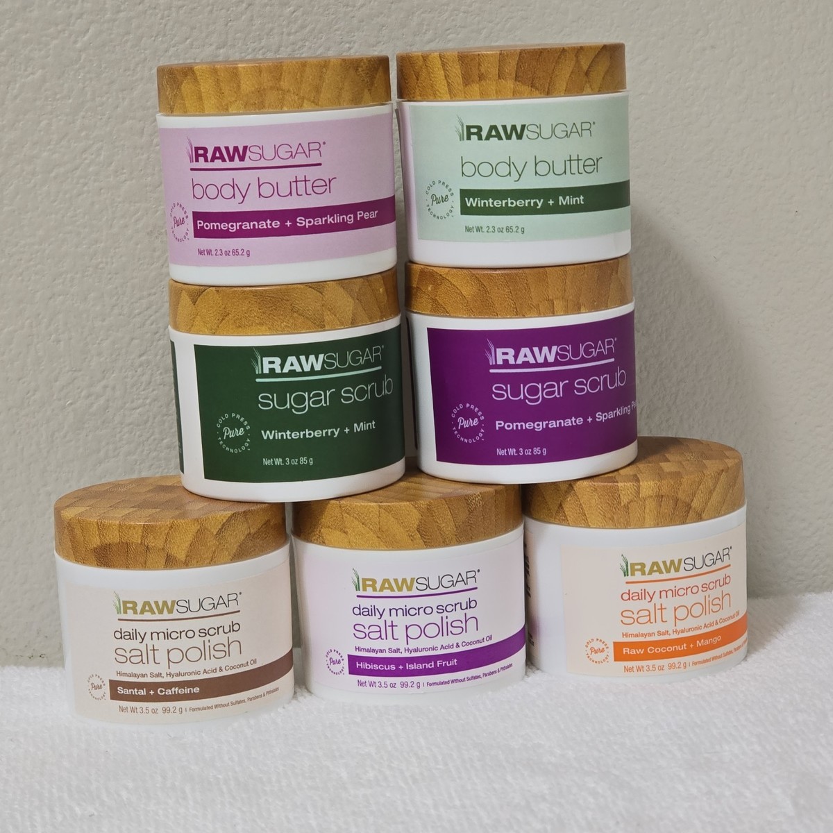 New Lot of 7 RAWSUGAR Sugar Scrub Exfoliation / Body Butter Travel Set - Sizes range from 2.3oz / 3oz / 3.5oz.
