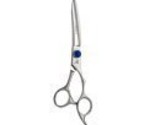 High quality Japanese Hitachi 440C stainless steel, 6.0" professional shear designed for optimal comfort and efficieny with an ergonomic off set handle, adjustable tension knob, dry-cutting style blade and fixed finger rest. Leather case included.