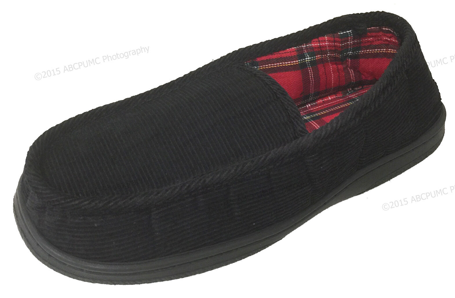 New Men's Close Back Slipper Black Corduroy Flannel Lining Moccasins House Shoes, Sizes:9-15