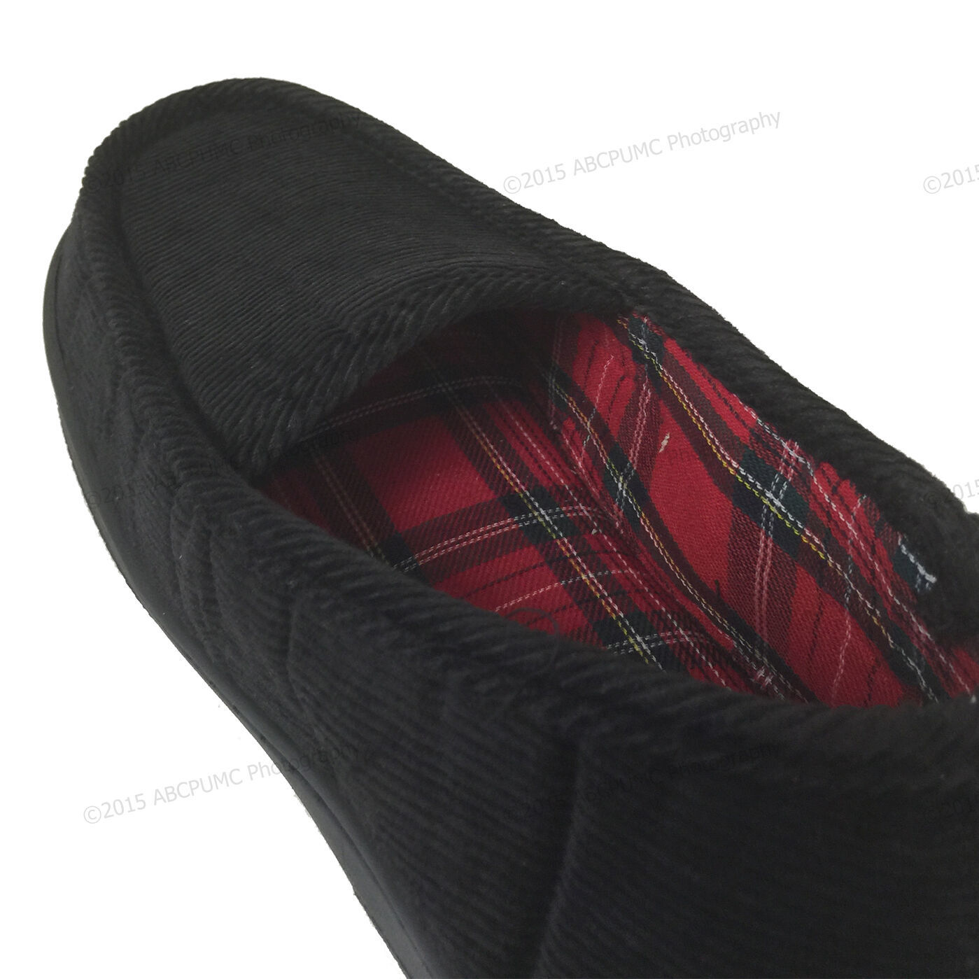 - New Men's Close Back Slipper Black Corduroy Flannel Lining Moccasins House Shoes