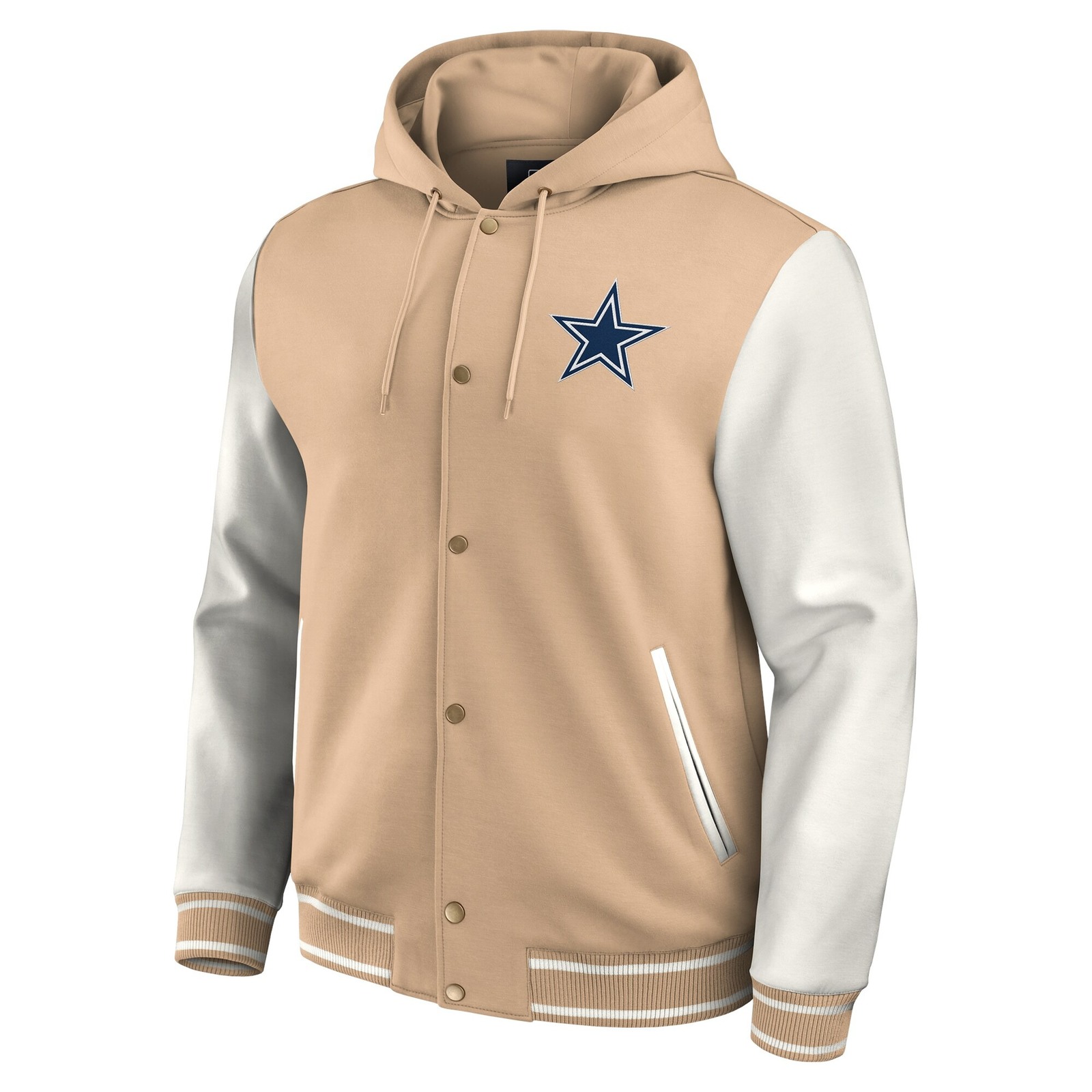 New Mens Dallas Cowboys Tri-Blend Full-Snap Hoodie Baseball Jacket Darius Rucker Collection Tan