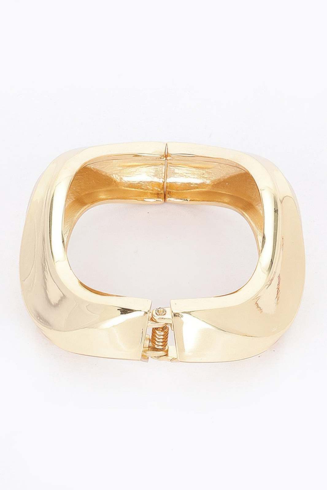Enhance your jewelry collection with the Metal Spring Hinge Bracelet, a sophisticated gold accessory that combines elegance with comfort. Crafted with a graceful curved design, this bracelet features a metal spring hinge that ensures easy wear and a secure fit. Perfect for any occasion, this chic bracelet will add a touch of luxury to your wrist.