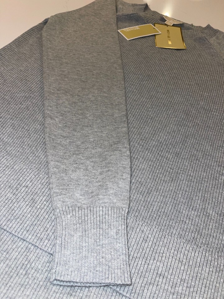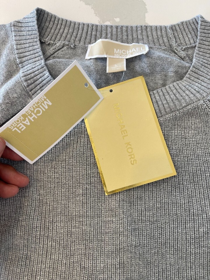 - NEW MICHAEL KORS REGAL CUTOUT SWEATER BLOUSE SHIRT PEARL HEATHER WOMENS LARGE