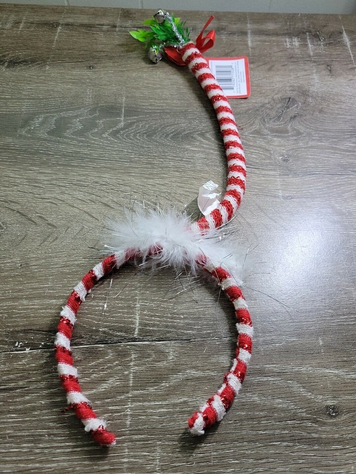 New Mistletoe Headband Red White, with Bells, Candycane, Christmas. Condition is New. Shipped with USPS First Class Mail within 24 hours.