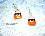 - NEW ORANGE & BROWN PURSE HANDBAG SILVER TONE EARRINGS