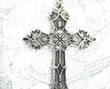 - NEW ORNATE CROSS ANTIQUE LOOK ALLOY SILVER METAL PENDANT ADJ CORD NECKLACE