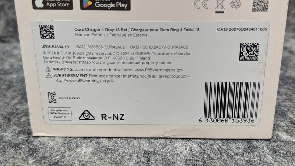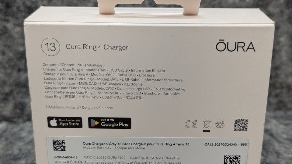 New Oura - Ring 4 Charger - Size 13 - Charging Dock and USB-C Cable - Grey