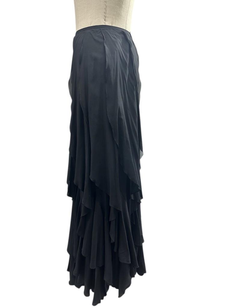 New Plein SUD Black Silk Flowy Skirt Size 38 EU / 6 US Made in France Originally $2,076New with tags but unfortunately because of improper handling there might be a tiny spot or two Approximately 41" long We guarantee authenticity on all of the items we sell Comes as shown