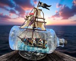 Design: Skeleton Pirate inside glass drift bottle